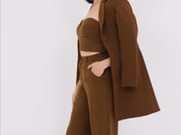 Command attention with this Délvra Power Co-ord Set, a perfect fusion of structure and sensuality. The set features a tailored longline blazer paired with high-waisted, wide-leg trousers and a sculpted bustier top redefining confidence in every stitch.Crafted in a rich cocoa tone, this ensemble blends modern elegance with effortless sophistication. The sharp tailoring enhances your frame, while the soft yet structured fabric ensures comfort and grace from day to night.