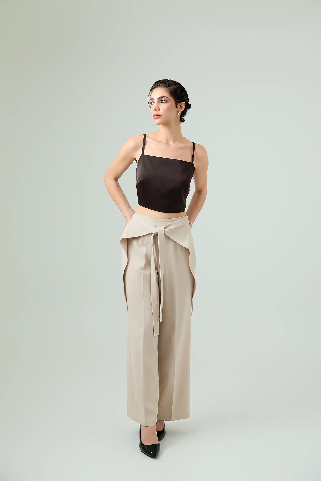 The wrap drape at the waist and hip adds gentle fullness and dimension.
