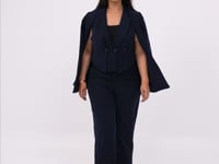 Step into timeless sophistication with this Lévoire tailored set, designed for the modern woman who values confidence and style. This set includes a structured blazer, a matching waistcoat, and high-waisted wide-leg trousers, offering endless versatility for both professional and evening looks.The blazer features sharp tailoring with a classic lapel and a contoured fit that flatters the figure. The waistcoat adds a refined layer of depth and polish, while the wide-leg trousers elongate the silhouette, creating a powerful yet elegant finish. Crafted from a premium suiting fabric, this set combines structure, comfort, and sophistication.