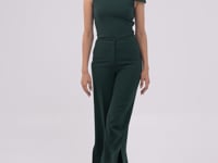The wide-leg trousers, finished with sleek side slits, introduce graceful movement and volume at the hemline ensuring a perfectly proportioned silhouette from top to bottom. Designed for the modern woman, this set blends elegance, confidence, and versatility in equal measure.