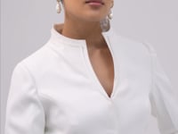 The Nuvéssa Co-ord Set is a vision of refined power and timeless sophistication. Crafted in pristine white, this ensemble blends structure with grace — a contemporary interpretation of confident femininity.The sculpted long-sleeve jacket features precise tailoring that defines the waist and enhances natural curves, creating a balanced hourglass silhouette. The signature front cut-out neckline adds a hint of modern allure, while the sharp shoulder line reinforces a commanding presence. The clean, minimalist detailing accentuates the purity of white, making the design both bold and elegant.Paired with high-waisted pleated wide-leg trousers, the outfit offers a perfect equilibrium between strength and softness. The trousers add volume and movement, balancing the fitted upper structure while elongating the frame for a statuesque look.